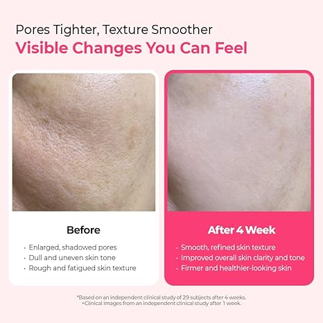 يساعد السيروم في تحفيز الكولاجين والإيلاستين لشد البشرة وتقليل مظهر التجاعيد والخطوط الدقيقة، مع منحها ترطيبًا مكثفًا وإشراقة صحية متوهجة.