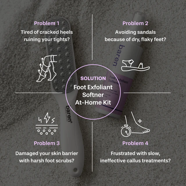 استمتعي بعناية قدمين منزلية فائقة السهولة مع Foot Softener At-home Kit – الحل الأمثل للتخلّص من الجلد الميت والطبقات الخشنة خلال دقيقة واحدة فقط! ✨