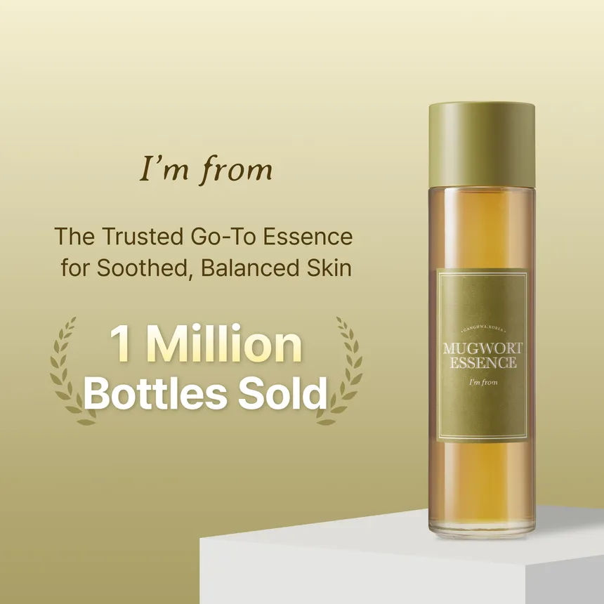 اختبري نقاء الطبيعة الكورية مع I’m from Mugwort Essence، الإيسنس الأشهر بتركيبته النقية التي تحتوي على 100% من مستخلص نبات الشيح (Mugwort) المزروع في مقاطعة “غانغوا” بكوريا الجنوبية، والمعروف بقدرته المذهلة على تهدئة البشرة وتنقيتها.