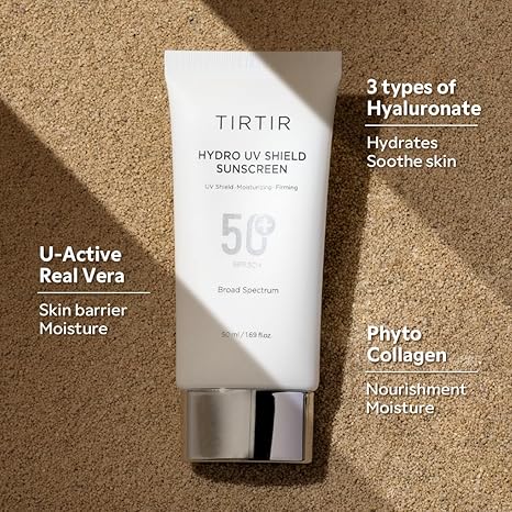 احمي بشرتك يوميًا مع TIRTIR Hydro UV Shield Sunscreen SPF50+، الواقي الشمسي الكريمي بخاصية الحماية الفائقة من أشعة الشمس الضارة UVA/UVB بفضل معامل الحماية SPF50+ وPA++++. يتميز بقوامه الكريمي الخفيف الذي ينساب بسلاسة على البشرة بدون أي أثر دهني أو طبقة بيضاء، مما يجعله مثاليًا للاستخدام كـ برايمر قبل المكياج بلمسة طبيعية ومنتعشة.